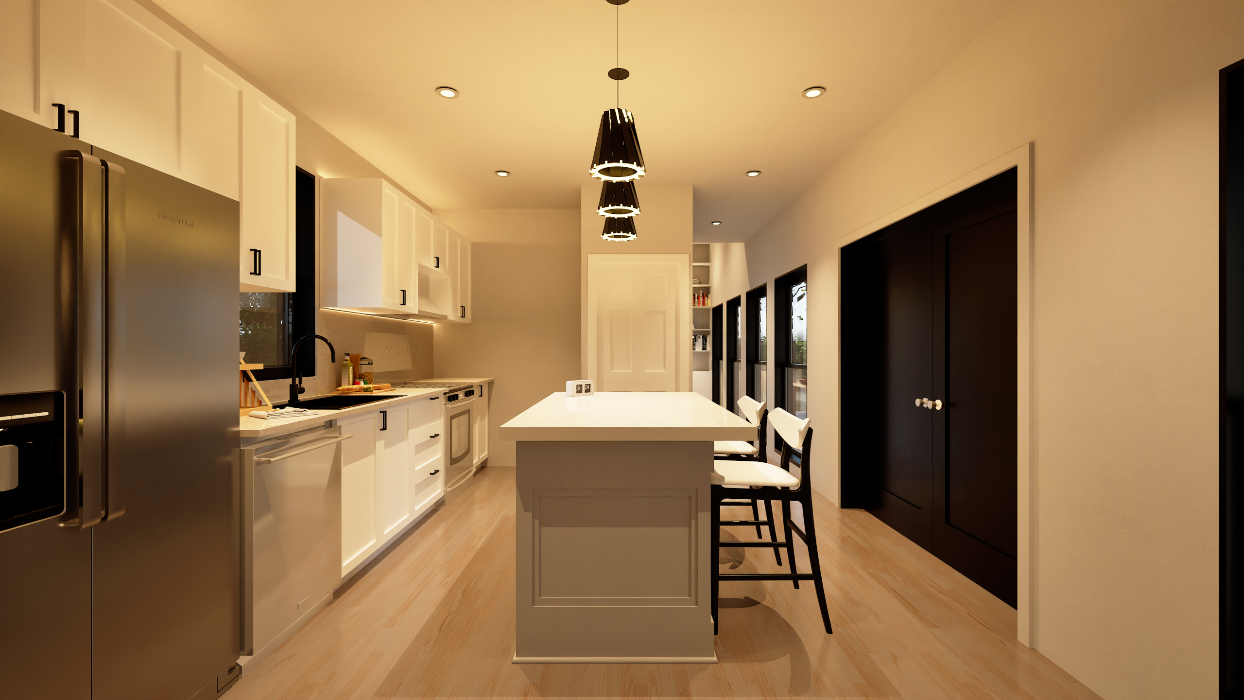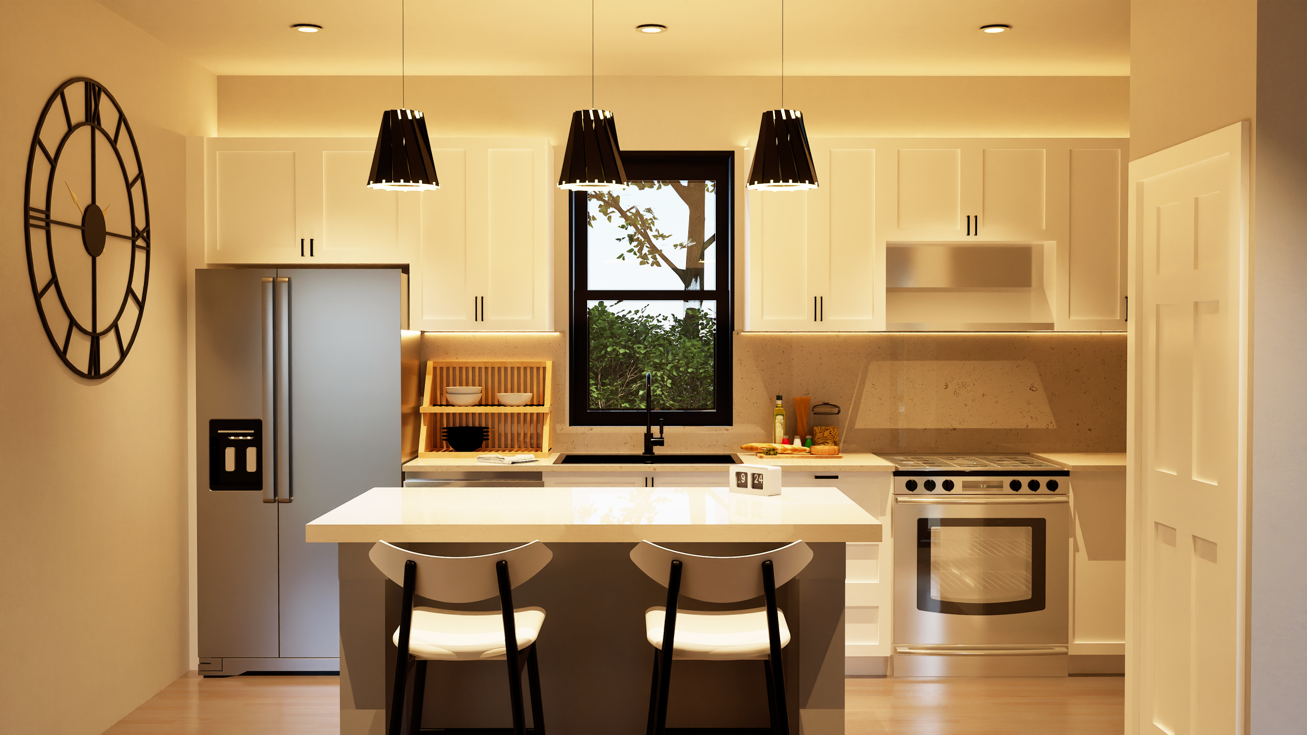 Factory-built cabinetry in curated styles—select door profile, finish, and storage options. Non-porous, stain-resistant surfaces in designer colors and edges. Efficient appliance packages sized for your plan, features vary by series.